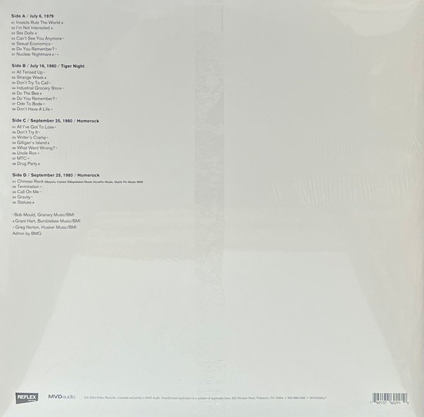 engineer [studio engineer] Tom Herbers executive producer, legal Dennis Pelowski lacquer cut by Michael Fanos liner notes Thurston Moore mastered by, mixed by Jeff Lipton mastered by, mixed by Maria Rice photography by Tim Crowe producer Greg Norton project manager, layout Sabrina Koerber recorded by [live recordings] Terry Katzman Copyright (c) Reflex Records (5) Phonographic Copyright (p) Reflex Records (5) Published By Granary Music Published By BMG Bumblebee Music Published By Hüsker Music Published By BMG Licensed To MVD Audio Recorded At Jay's Longhorn Lacquer Cut At Well Made Music Engineered At Third Ear Recording Mastered At Peerless Mastering Mixed At Peerless Mastering Pressed By Gotta Groove Records Edition of 5000 copies. Barcode: 7 60137 60291 0 (Text) Barcode: 760137602910 (Scanned) Rights Society: BMI Matrix / Runout: MVD6029LP-A WELL MADE MUSIC mf (Runout, Side A) Matrix / Runout: MVD6029LP-B WELL MADE MUSIC mf (Runout, Side B) Matrix / Runout: MVD6029LP-C WELL MADE MUSIC mf (Runout, Side C) Matrix / Runout: MVD6029LP-D WELL MADE MUSIC mf (Runout, Side D)