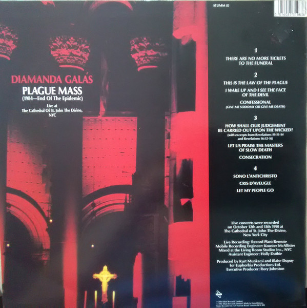 drums, percussion David Linton engineer [assistant] Holly Duthie engineer [mobile recording] Kooster McAllister executive-producer Rory Johnston keyboards [electronic] Blaise Dupuy percussion [electronic] Ramon Diaz producer Blaise Dupuy producer Kurt Munkacsi tape, electronics Michael McGrath Recorded By Record Plant Mobile Studio Phonographic Copyright (p) Mute Records Ltd. Copyright (c) Mute Records Ltd. Recorded At Cathedral Of St. John The Divine Mixed At The Living Room Studios Inc. Single pocket gloss sleeve plus a 24 x 12 insert, printed on both sides. Discs held in plain inners.