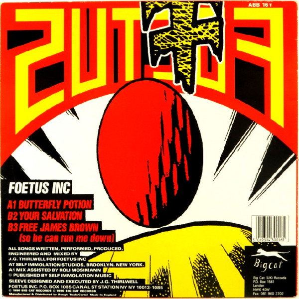 tracks a mixed by [assistant] Roli Mosimann mixed by, written-by, performer, engineer, producer J.G. Thirlwell Manufactured By Rough Trade Manufactured By The Cartel Distributed By Rough Trade Distributed By The Cartel Phonographic Copyright (p) Big Cat Records (5) Copyright (c) Big Cat Records (5) Engineered At Self Immolation Studios Pressed By Damont Published By Self Immolation Mastered At The Town House All songs engineered and mixed for Foetus Inc at Self Immolation Studios, Brooklyn, New York.